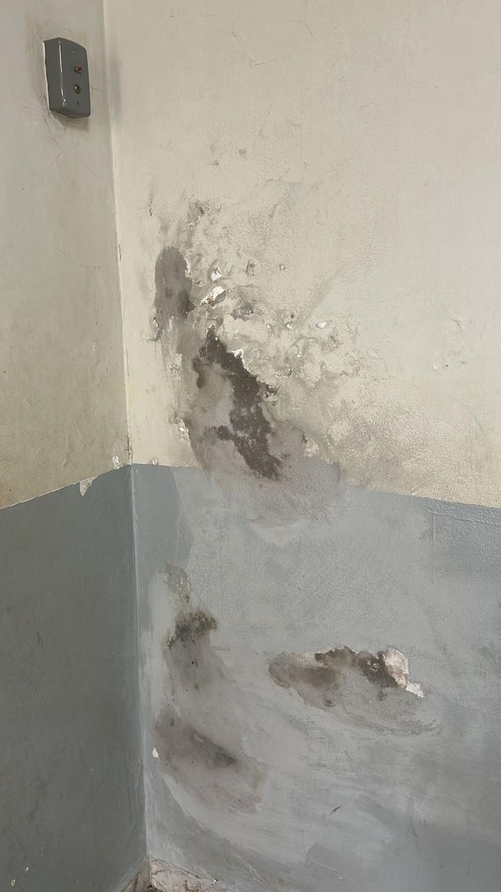 Ela alega que a unidade apresenta infiltrações generalizadas, com proliferação de mofo em salas de aula, degradação estrutural do prédio e sanitários inadequados à faixa etária atendida pela instituição de ensino escolar, além da inoperância da sala de educação física.